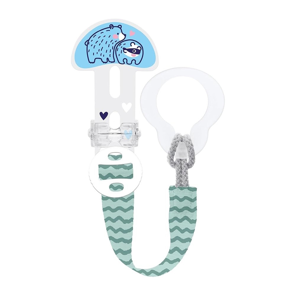 • Fácil y seguro – El nuevo mecanismo de clip del sujetachupete se puede accionar con una sola mano, logrando un cierre seguro. La cinta es suave, lavable y duradera.