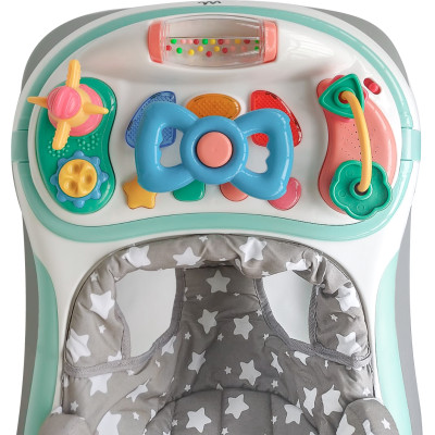 Bandeja de juego extraíble con sonidos electrónicos y actividades.