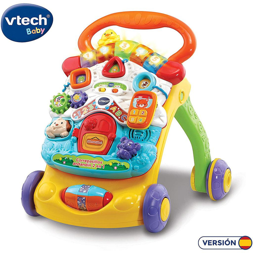 Ya sea jugando en el suelo o paseando, el Correpasillos Andandín 2 en 1 de VTech es el juguete idóneo para acompañar a tu bebé y crecer con él. Su panel de actividades extraíble cuenta con un piano iluminado, formas encajables, un teléfono móvil y horas de diversión concentradas en un diseño aún más cómodo y compacto. Acóplalo al andador y llévalo donde quieras para que la diversión no cese ni un instante.