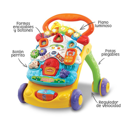 Ya sea jugando en el suelo o paseando, el Correpasillos Andandín 2 en 1 de VTech es el juguete idóneo para acompañar a tu bebé y crecer con él. Su panel de actividades extraíble cuenta con un piano iluminado, formas encajables, un teléfono móvil y horas de diversión concentradas en un diseño aún más cómodo Ver más...