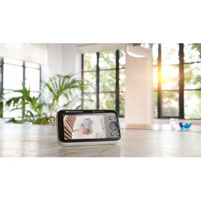 Con opción de montaje en escritorio y pared. El gran monitor portátil a color de 5" tiene dos barras indicadoras del nivel de ruido y mucho más, para que nunca tenga que preocuparse por no oír a su bebé.