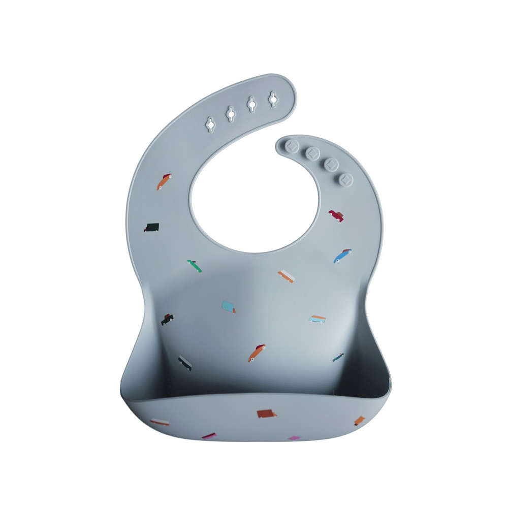 La colección de baberos de silicona de Mushie es divertida, atemporal y colorida en varios diseños.