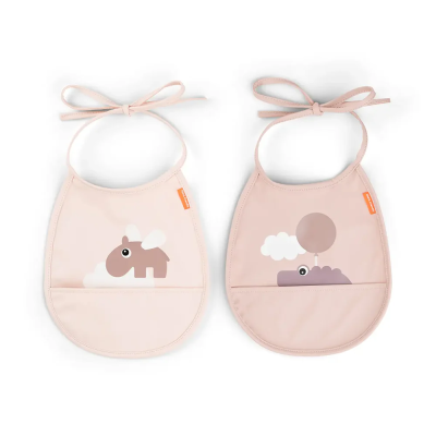 Nuestro Pack de 2 baberos mini con bolsillo es un bonito complemento para la nueva rutina de comidas de tu peque. Estos encantadores baberos están disponibles en un bonito tono empolvado y presentan divertidos motivos de ozzo y croco volando entre nubes felices.