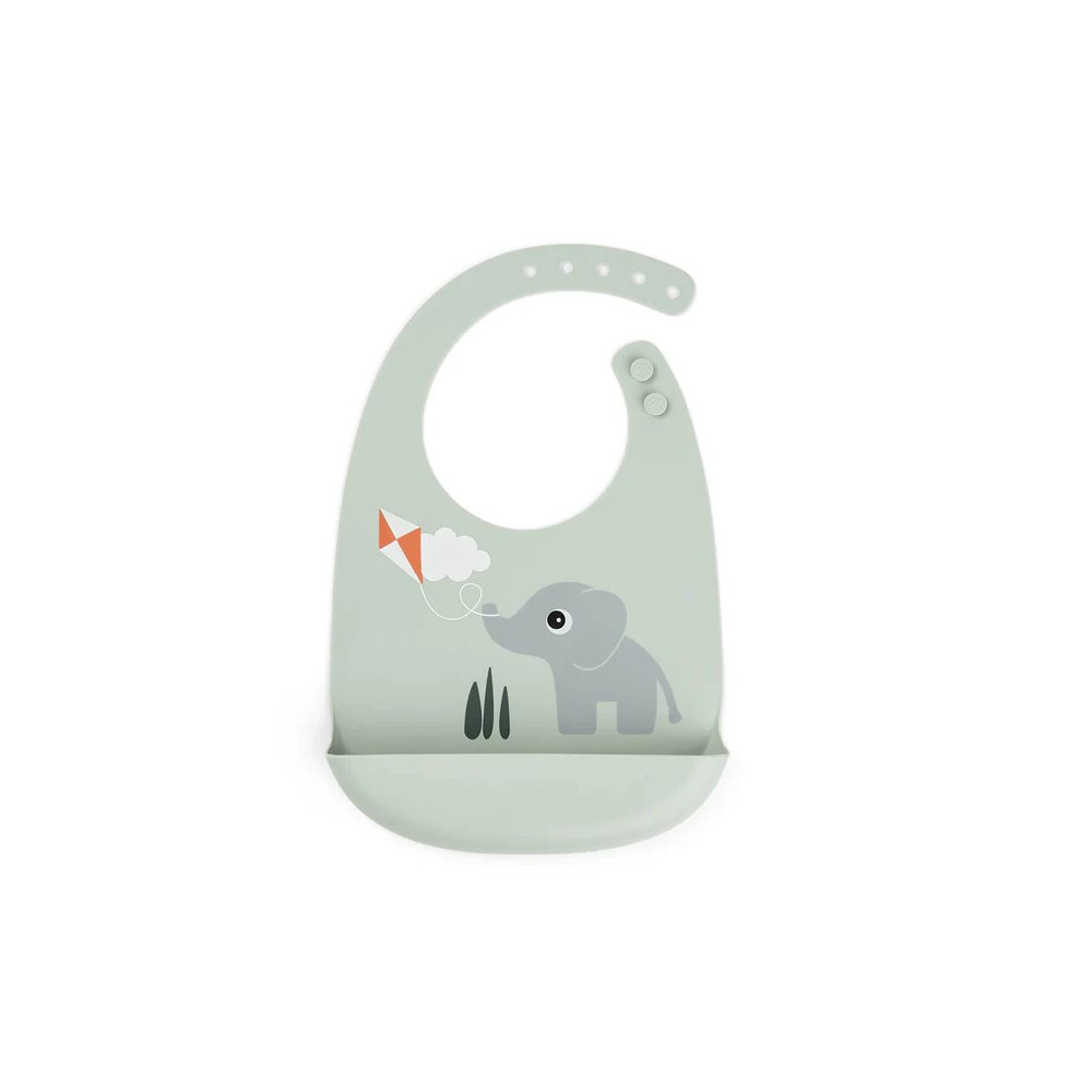 La hora de la comida es para probar, aprender y ensuciar un poco. Este babero de silicona facilita las cosas, con un bolsillo que se mantiene abierto para recoger los bocados que caen antes de que lleguen al suelo.