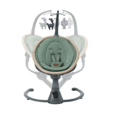 Un elegante balancín eléctrico diseñado para ayudar a los padres con su recién nacido cuando ambos necesitan tener las manos libres. Recomendado desde el nacimiento hasta los 6 meses (aprox. 9kg), Cassia detecta cuando tu pequeño se pone inquieto e instintivamente empezará a balancearse para calmarlo. Envuelto en el suave y acolchado reductor, tu bebé se sentirá reconfortado por las 12 melodías y sonidos de la naturaleza que Cassia reproduce. Estés donde estés en la habitación, la rotación 360° te garantiza un contacto visual constante con tu pequeño.