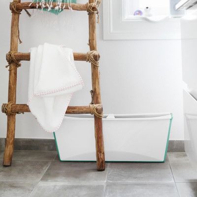 Es una bañera plegable de bebé que puede usarse desde el nacimiento hasta los cuatro años. Su diseño compacto facilita el guardado y permite su uso tanto en casa como cuando se viaja. Comparte el momento del baño donde sea que estés. El soporte opcional para recién nacidos de Stokke® Flexi Bath® provee confort adicional a los más pequeños. Stokke siempre se esfuerza por mejorar sus productos. Por ello te ofrece un tapón de drenaje termosensible. El tapón funciona cambiando de color a medida que el agua se calienta, avisando a los padres visualmente de que la temperatura del agua está ascendiendo y debe verificarse. Ten en cuenta que el tapón no es un termómetro. Comprueba siempre la temperatura del agua con tu mano para asegurarte de que sea la adecuada para la comodidad y seguridad de tu bebé. Ante la duda, utiliza un termómetro homologado para medir la temperatura con mayor precisión.