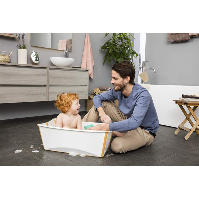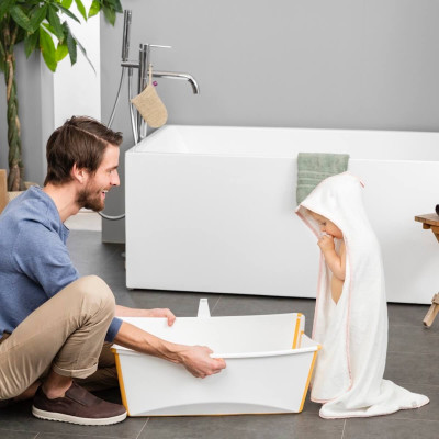 Es una bañera plegable de bebé que puede usarse desde el nacimiento hasta los cuatro años. Su diseño compacto facilita el guardado y permite su uso tanto en casa como cuando se viaja. Comparte el momento del baño donde sea que estés. El soporte opcional para recién nacidos de Stokke® Flexi Bath® provee confort adicional a los más pequeños. Stokke siempre se esfuerza por mejorar sus productos. Por ello te ofrece un tapón de drenaje termosensible. El tapón funciona cambiando de color a medida que el agua se calienta, avisando a los padres visualmente de que la temperatura del agua está ascendiendo y debe verificarse. Ten en cuenta que el tapón no es un termómetro. Comprueba siempre la temperatura del agua con tu mano para asegurarte de que sea la adecuada para la comodidad y seguridad de tu bebé. Ante la duda, utiliza un termómetro homologado para medir la temperatura con mayor precisión.