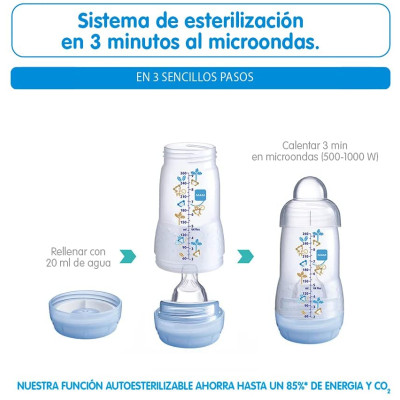 El MAM Easy Start™ Anti-Colic es el biberón ideal para recién nacidos: los bebés pueden beber a su propio ritmo de forma relajada.