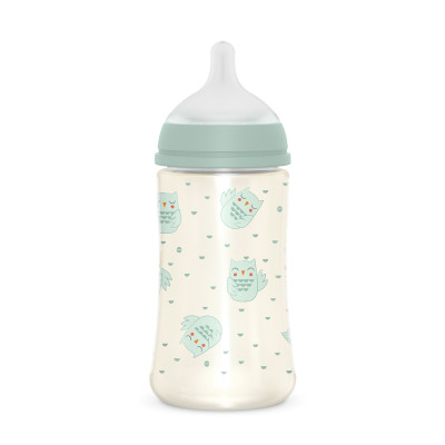Biberón de 270 ml de la serie Bonhomia, equipado con la innovadora tetina SX Pro simétrica de flujo medio, diseñada para favorecer un desarrollo oral saludable en tu bebé.