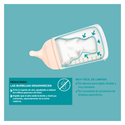 ¡El Nº1 en biberones anticólicos! El biberón ZERØ.ZERØ™con bolsa anticólico funciona de la misma manera que lo hacen las glándulas mamarias. Su sistema hace que las burbujas desaparezcan para evitar la ingesta de aire, ayudando a reducir los cólicos gaseosos del bebé.