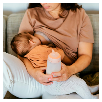 Doble innovación para favorecer la lactancia mixta con los beneficios de un biberón anticólicos.