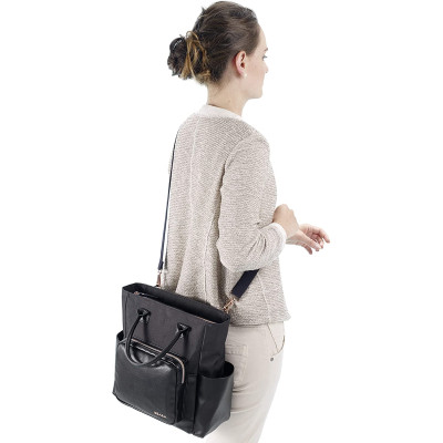 Práctico y fácil de usar: abertura grande, bandolera ajustable, llavero integrado, bolsillo delantero con un acceso fácil a la alfombrilla cambiador y un interior fácil de limpiar.