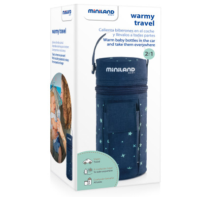Gracias a su doble función como calientabiberones y bolsa, los papás podrán poner a punto el biberón en el coche y llevarlo a cualquier parte. warmy travel es muy ligero y cómodo de transportar gracias a su asa superior para engancharlo en el carrito del bebé.