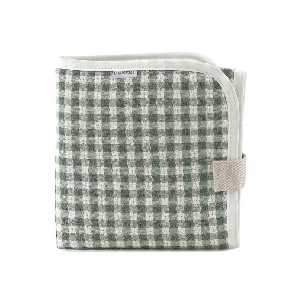 Es fácilmente plegable mediante velcro y supone un artículo indispensable en el bolso maternal ya que en cualquier momento y lugar se puede requerir su utilización.