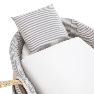 Incluye un cojín y un práctico bolsillo para poder guardar, sonajeros, muselinas,etc .