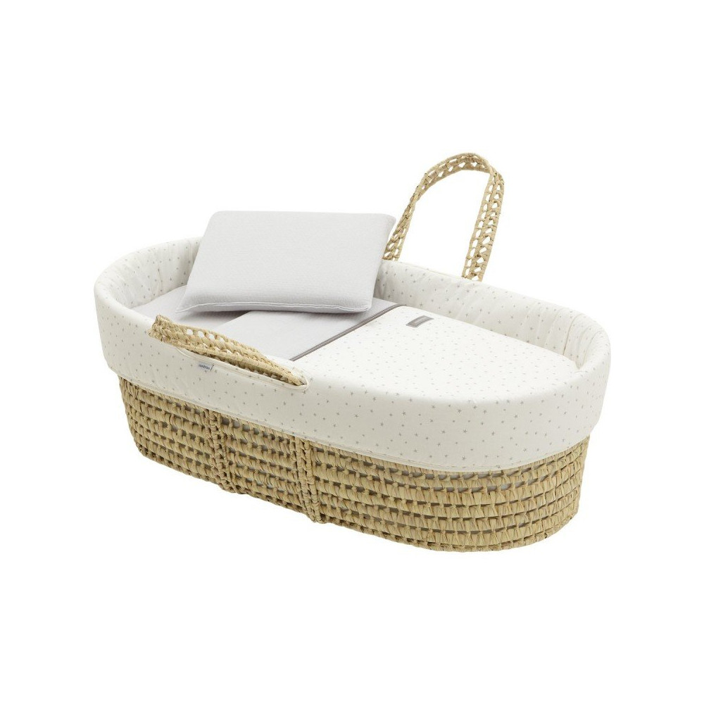 El moisés de palma acolchado de Cambrass, está indicado para los primeros meses de vida del bebé y gracias a sus asas su transporte es muy sencillo.