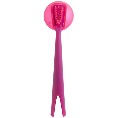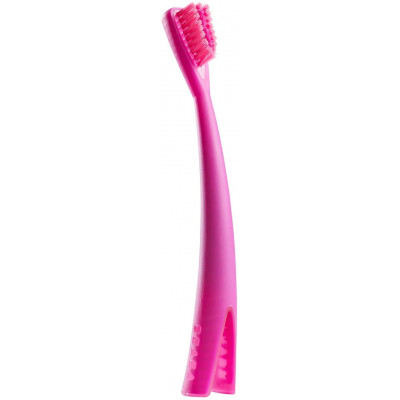El primer cepillo de dientes para iniciar al bebé al cepillado de sus dientes. Su cabezal estrecho y de forma triangular se adapta a la boca del niño y hace posible que el cepillado sea más preciso. El mango cónico facilita la prensión. Hecho con un material blando que ayuda a proteger las encías. Cerdas muy suaves. Viene con un soporte que facilita el secado del cepillo. Fácil de instalar gracias a la ventosa en la parte posterior.