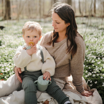 El chupete FRIGG Daisy está lleno de encanto y disponible tanto en monocromático como en colores mixtos.