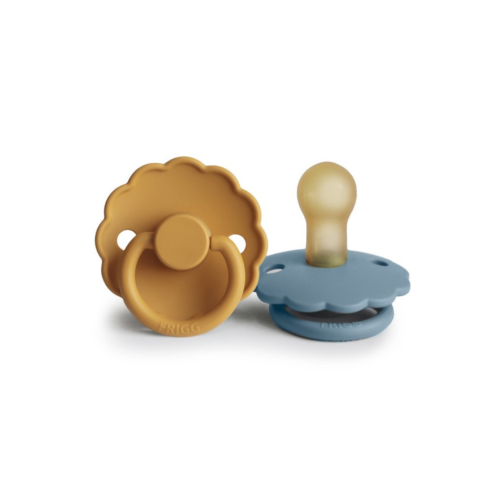 Pack 2 Chupetes FRIGG Block Latex DAISY 0-6m Honey Gold/Glacier Blue