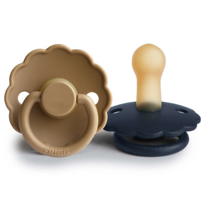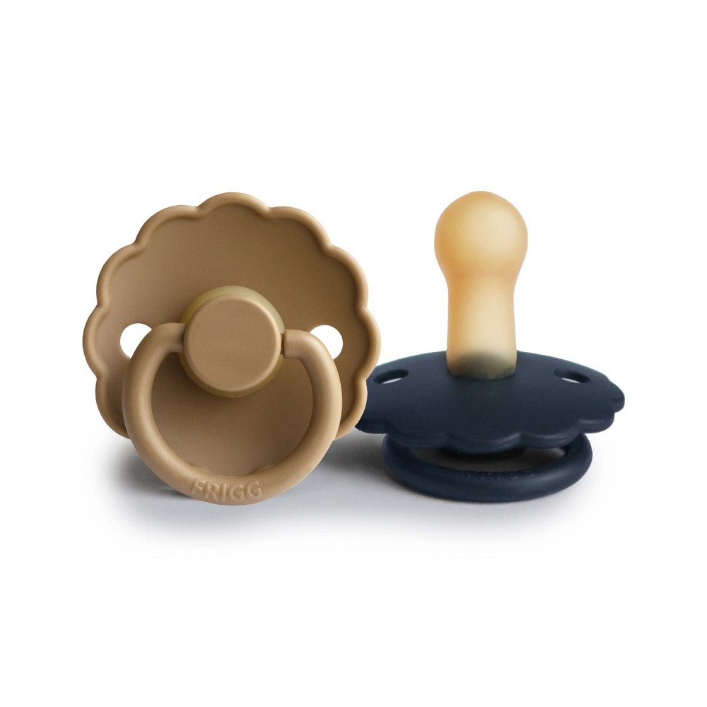 Pack 2 Chupetes FRIGG Block Latex DAISY 6m+ Cappuccino/ Dark Navy