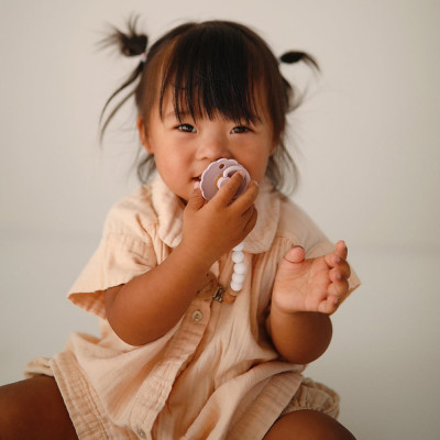 El chupete FRIGG Daisy está lleno de encanto y disponible tanto en monocromático como en colores mixtos.