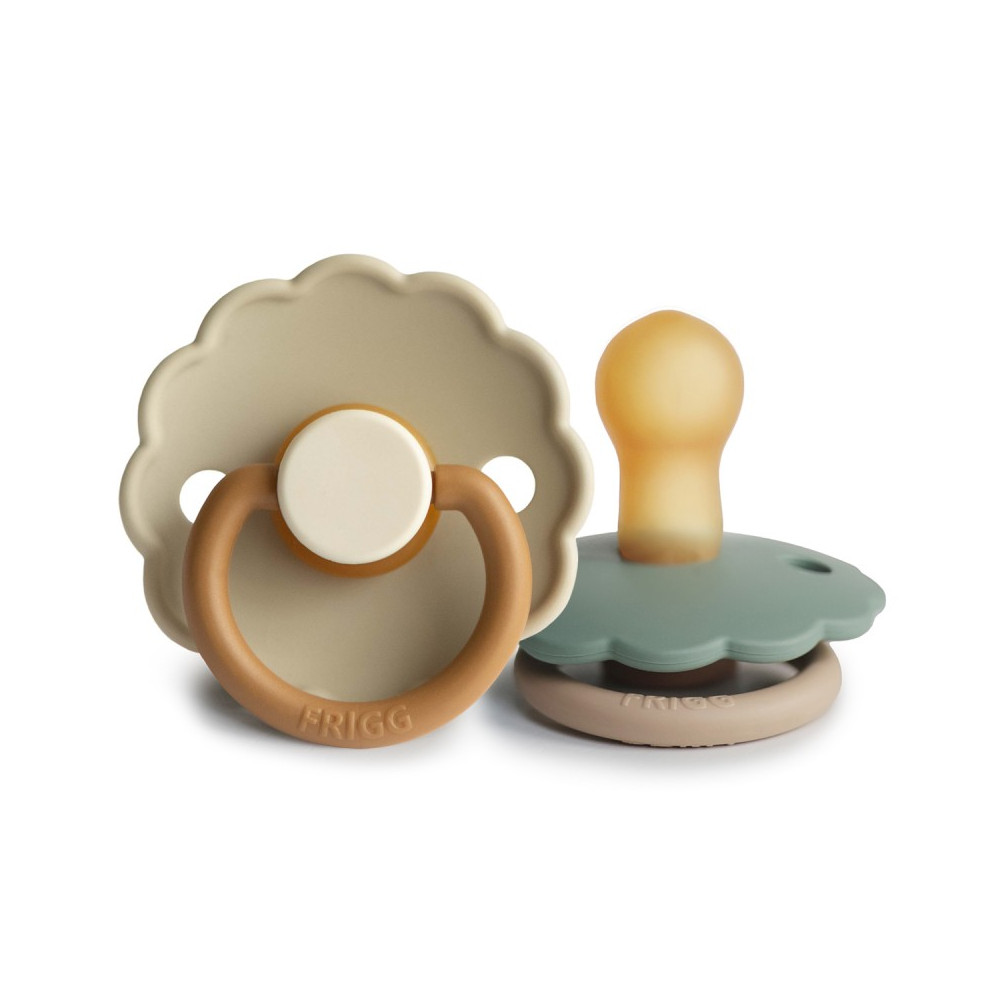 El chupete FRIGG Daisy está lleno de encanto y disponible tanto en monocromático como en colores mixtos.