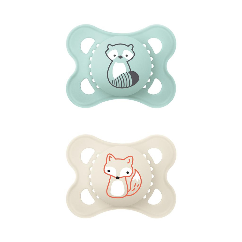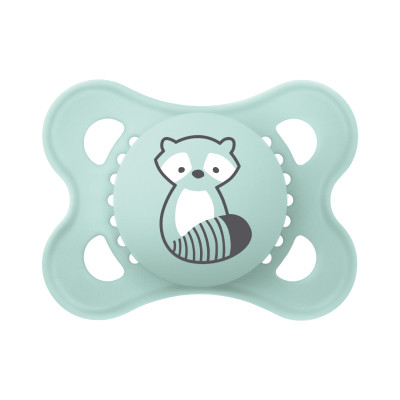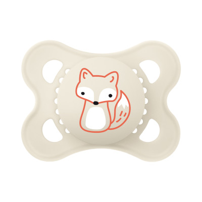 Forma curvada para un máximo confort. Cuidadoso con la piel gracias a los grandes orificios de aire y a los hoyuelos exclusivos de MAM en el interior.