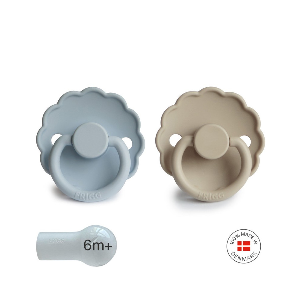 Pack 2 Chupetes FRIGG Block Silicona DAISY 6m+ Powder Blue/Sandstone