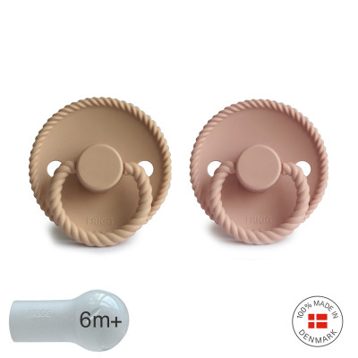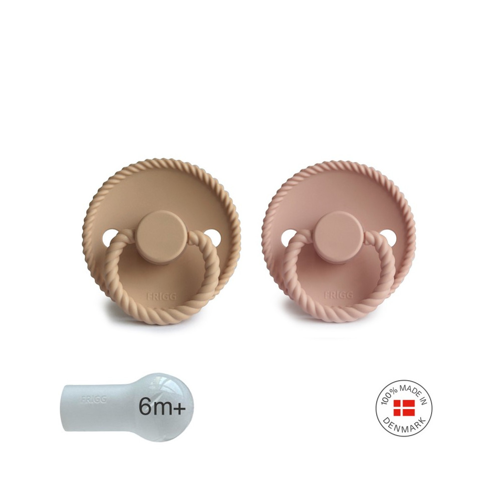 Pack 2 Chupetes FRIGG Block Silicona ROPE 6m+ Croissant/Blush