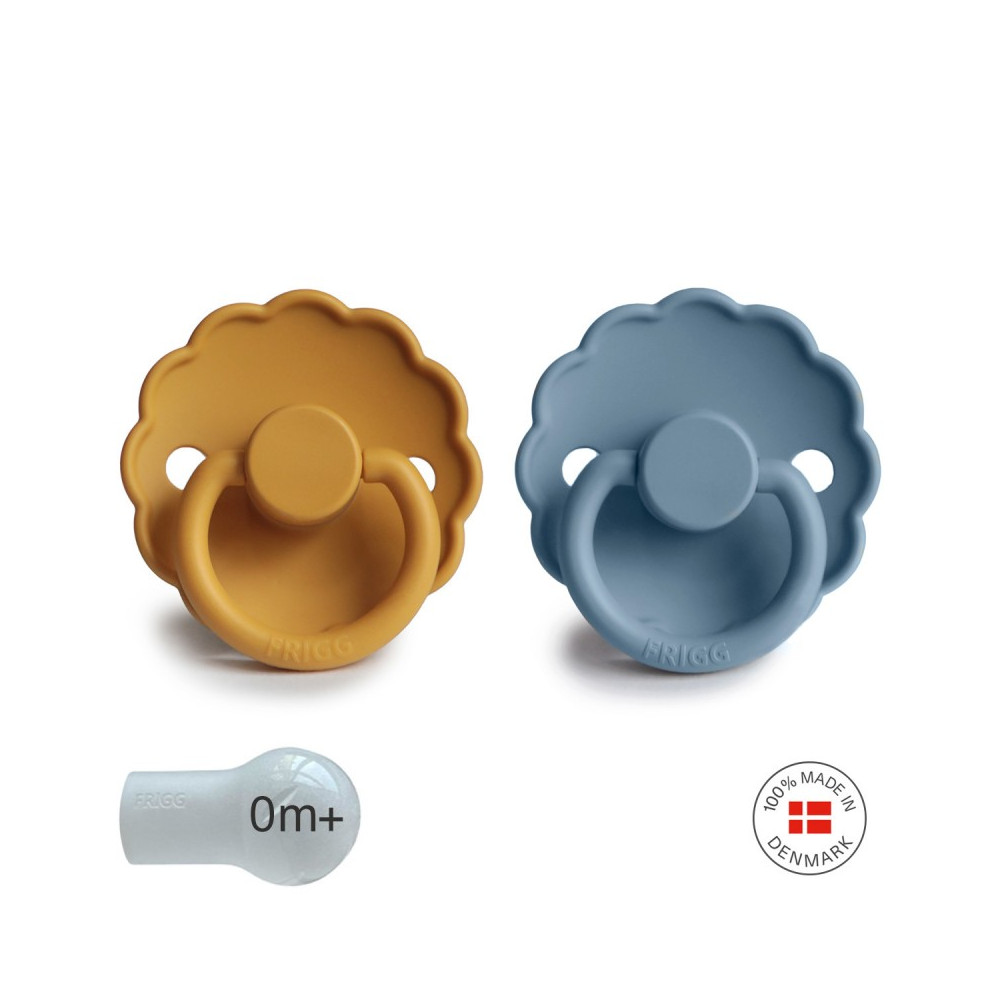 Pack 2 Chupetes FRIGG Block Silicona DAISY 0-6m Honey Gold/Glacier Blue