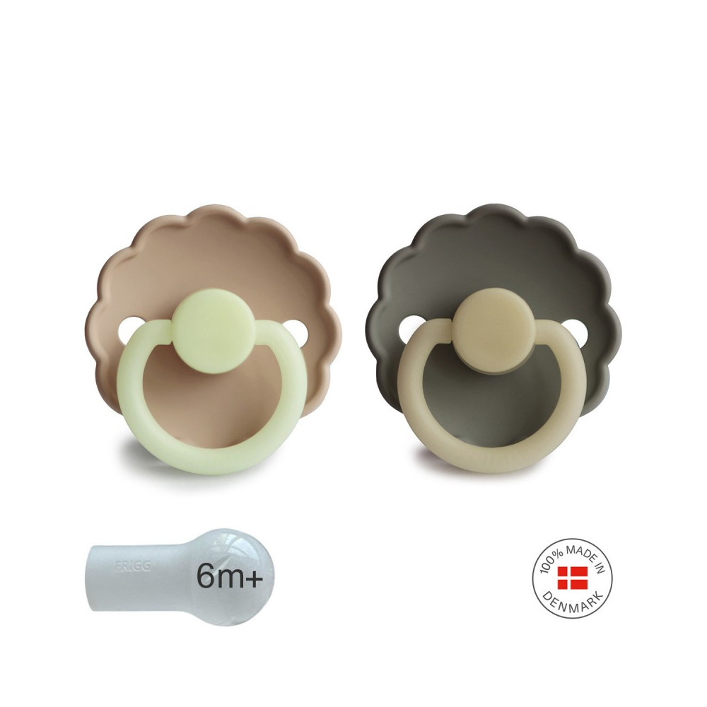 Pack 2 Chupetes FRIGG Night Silicona DAISY 6m+ Croissant/Portobello