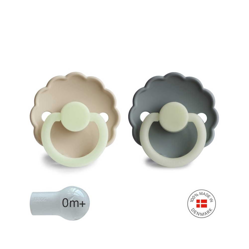 Pack 2 Chupetes FRIGG Night Silicona DAISY 0m+ Cream/French Gray