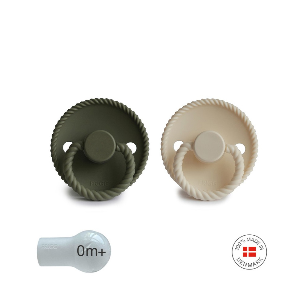 Pack 2 Chupetes FRIGG Block Silicona ROPE 0-6m Cream/Olive