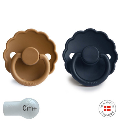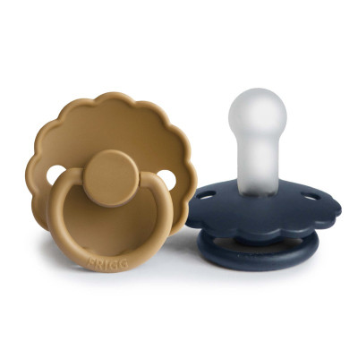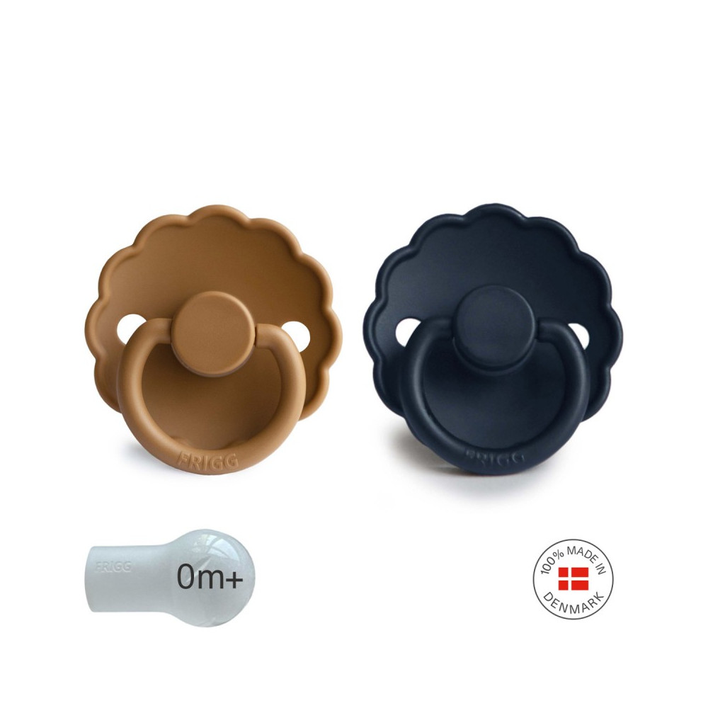 Pack 2 Chupetes FRIGG Block Silicona DAISY 0-6m Cappuccino/ Dark Navy
