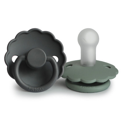 Pack 2 Chupetes FRIGG Block Silicona DAISY 0-6m Graphite/ Lily Pad