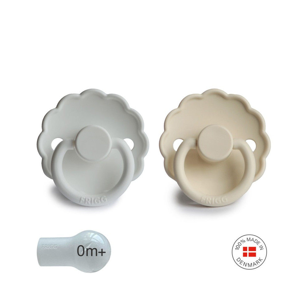 Pack 2 Chupetes FRIGG Block Silicona DAISY 0-6m Bright White/Cream