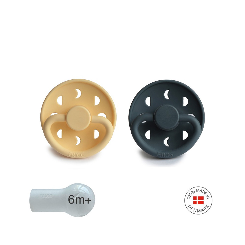 Pack 2 Chupetes FRIGG Block Silicona MOON PHASE 6m+ Pale Daffodil/Slate