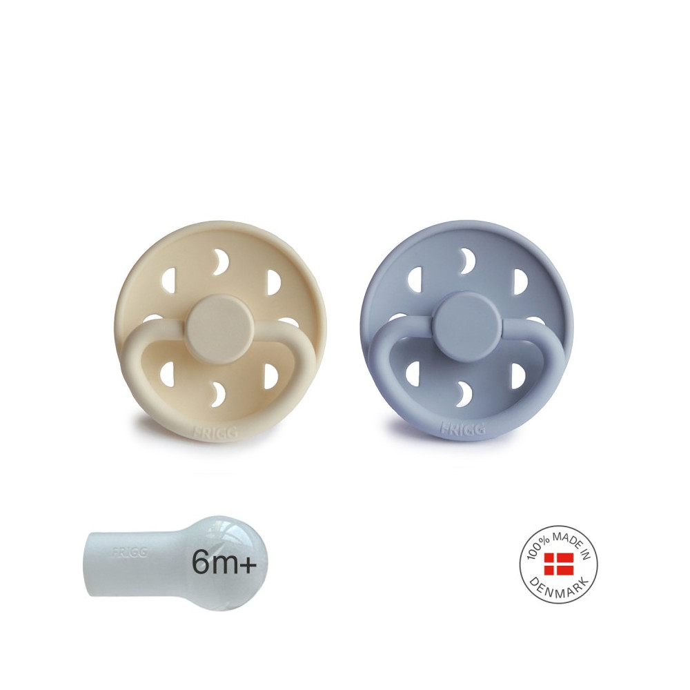 Pack 2 Chupetes FRIGG Block Silicona MOON PHASE 6m+ Powder Blue/Cream