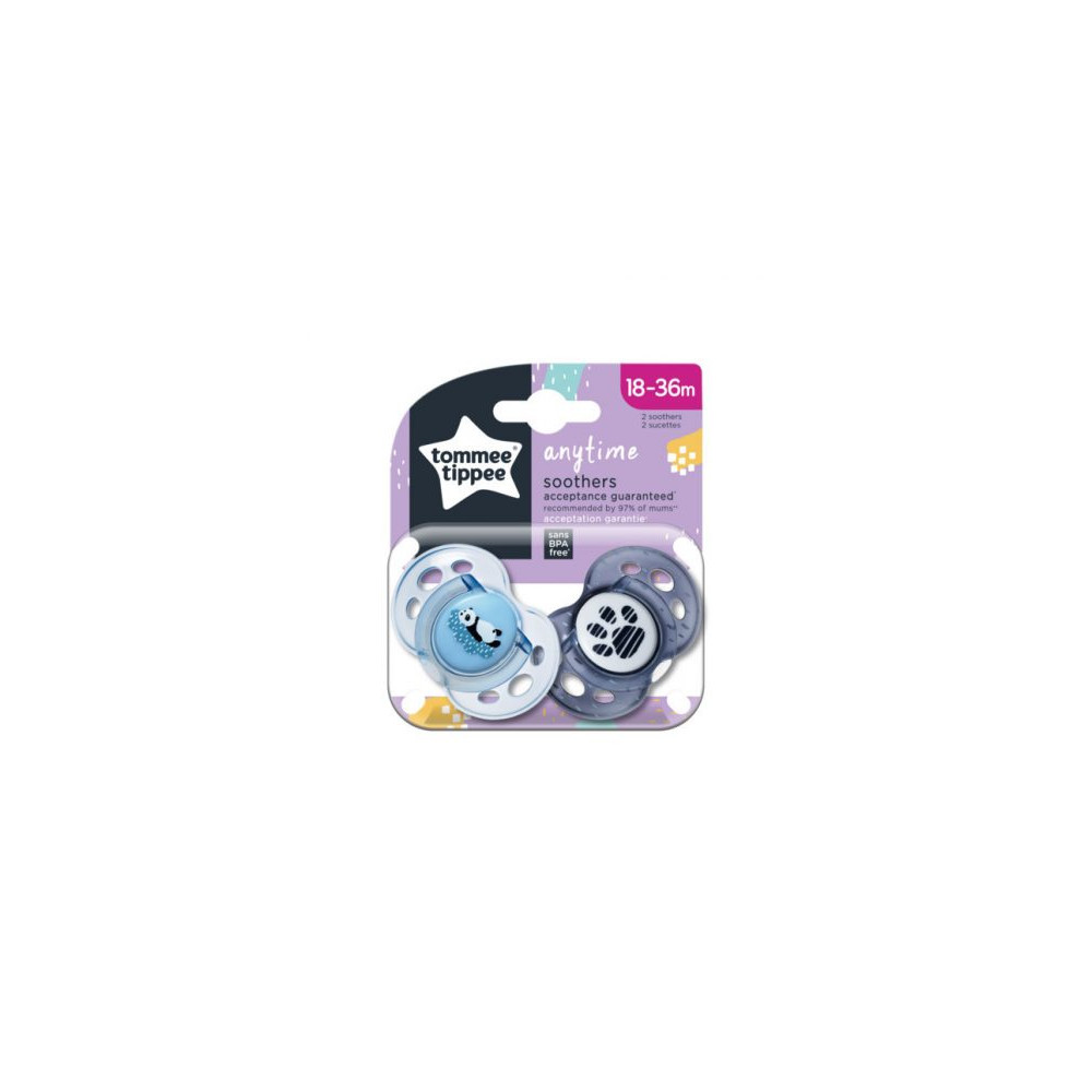 El envase contiene dos chupetes de 18 a 36 meses (diseños surtidos).