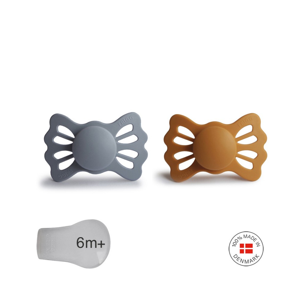 FRIGG Lucky es un chupete simétrico con una tetina ligeramente aplanada y en forma de lágrima. El chupete simétrico siempre encaja correctamente en la boca del bebé, independientemente de si está orientado hacia arriba o hacia abajo. El chupete está diseñado con un cuello más plano para reducir la presión sobre el paladar, las encías y también reducir el riesgo de dientes torcidos y una mordida torcida. El diseño ortodóntico es perfecto para favorecer el correcto desarrollo de los dientes, la mandíbula y el paladar del bebé.