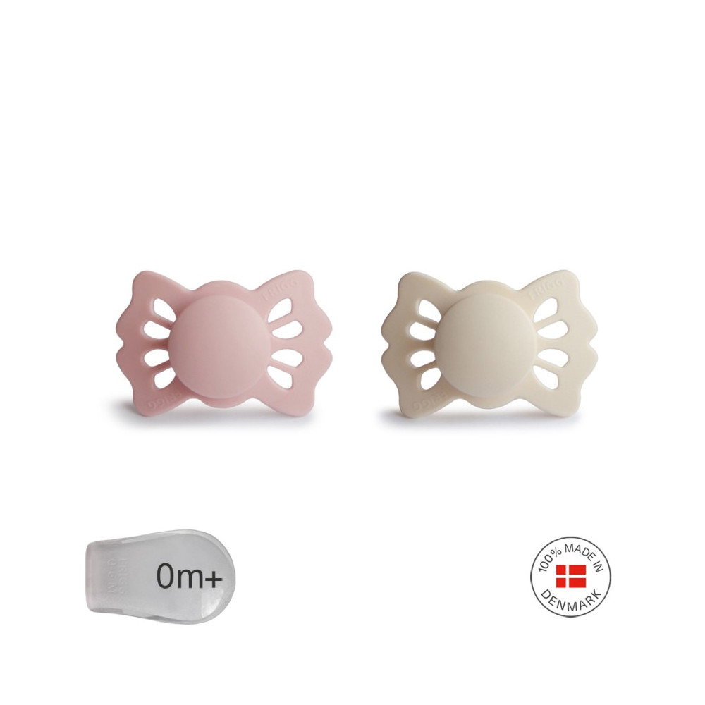 FRIGG Lucky es un chupete simétrico con una tetina ligeramente aplanada y en forma de lágrima. El chupete simétrico siempre encaja correctamente en la boca del bebé, independientemente de si está orientado hacia arriba o hacia abajo. El chupete está diseñado con un cuello más plano para reducir la presión sobre el paladar, las encías y también reducir el riesgo de dientes torcidos y una mordida torcida. El diseño ortodóntico es perfecto para favorecer el correcto desarrollo de los dientes, la mandíbula y el paladar del bebé.