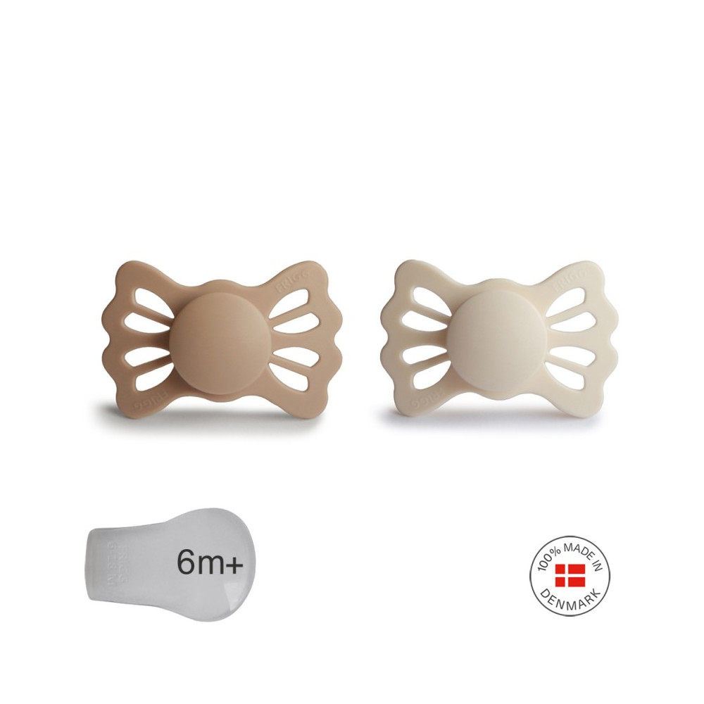 FRIGG Lucky es un chupete simétrico con una tetina ligeramente aplanada y en forma de lágrima. El chupete simétrico siempre encaja correctamente en la boca del bebé, independientemente de si está orientado hacia arriba o hacia abajo. El chupete está diseñado con un cuello más plano para reducir la presión sobre el paladar, las encías y también reducir el riesgo de dientes torcidos y una mordida torcida. El diseño ortodóntico es perfecto para favorecer el correcto desarrollo de los dientes, la mandíbula y el paladar del bebé.