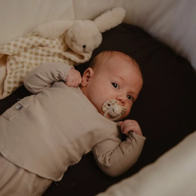 Con su tetina fisiológica de silicona SX Pro, diseñada para cuidar el desarrollo bucodental del bebé, es casi como si no llevara chupete.