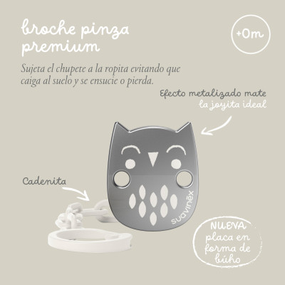 Broche para chupete de la colección Premium Owl de Suavinex.