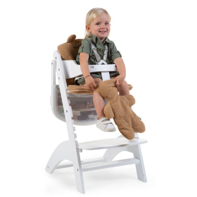 Este cojín súper suave Teddy hace que tu trona esté completa. Gracias a los materiales de calidad, el reductor de asiento ofrece a tu pequeño un confort óptimo. El asiento y el respaldo del cojín elevador son fáciles de colocar. El cojín de la trona tiene aberturas para insertar las correas del anés de seguridad de 5 puntos. El cojín se adapta perfectamente a nuestra trona Lamba 3. Su diseño con suave tela de peluche tiene orejitas de oso que convertirán a tu pequeño en un lindo osito (de peluche).