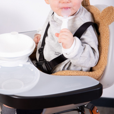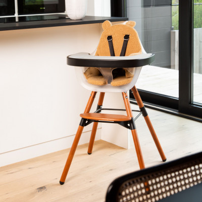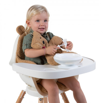 Este cojín para trona súper suave y acolchado hace que su Evolu 2 o Evolu ONE.80° esté completa. Gracias a los materiales de calidad, el reductor de asiento ofrece a tu pequeño un confort óptimo. El cojín de la trona tiene aberturas para insertar las correas del arnés de seguridad de 5 puntos. El reductor de asiento se adapta perfectamente a nuestras tronas Evolu 2 y Evolu ONE.80° de Childhome. El cojín con suave tela de peluche tiene orejitas de oso que convertirán a tu pequeño en un lindo osito (de peluche).