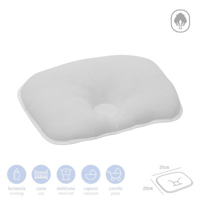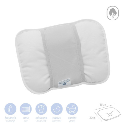 Por otra parte, como cojín de bebé, mantiene la cabeza del bebé en una posición óptima durante el sueño o el descanso (tanto cara a arriba como ladeado).