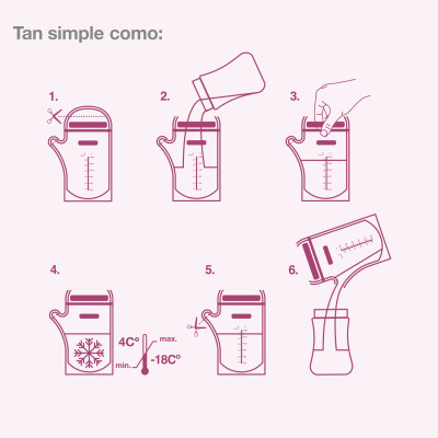 Las bolsas de almacenaje permiten que la leche materna recién extraída se conserve de forma hermética en el frigorífico o en el congelador y esté lista para usarse cuando la necesites. Su cierre de zip permite que se pueda abrir y cerrar con facilidad al tiempo que evita las fugas.