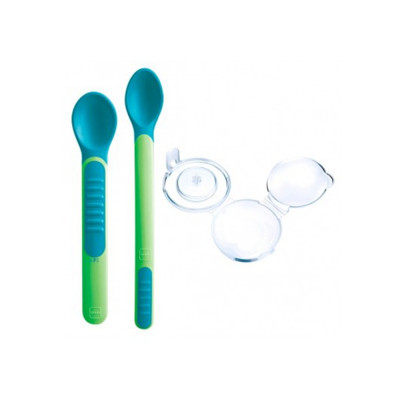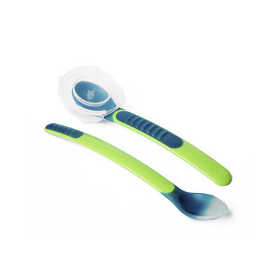 Cucharas Indicación de Temperatura y Estuche 2 unidades, son perfectas para dar la papilla a tu bebé: Si está demasiado caliente, su color cambia para avisarte.