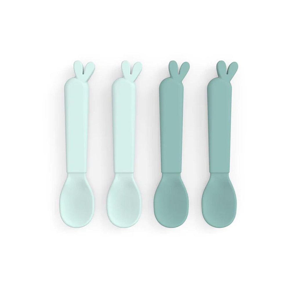 Práctico pack de 4 cucharas Kiddish en dos tonos de azul. Las cucharas tienen una superficie sedosa mate exclusiva que se siente agradable para el niño.